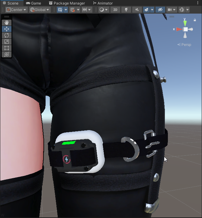 A shocker model combined with a touch contact to add a visual point on your avatar so people can trigger a shock by touching it.